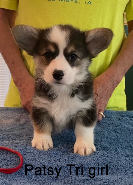 Rocky L Supercalifragilisticexpialidocious, aka, "Mary," is the dam. She is five years old and this is her last litter. "Mary" earned two breed points, and is a lovely tri-colored girl who I bred here and showed as a pup and then as an adolescent. She just didn't seem to like the show ring (it happens sometimes). She'd rather be a couch potato so I kept her to breed since her pedigree and health test results are stellar and she is just beautiful. Her sire is an experienced Champion show dog, so it's a mystery why she decided it wasn't for her. She is by our own "Ch Misty Ridge Rumblestiltskin, ROMX," out of "Corwinn's Flower Petal," both of whom have produced breed Champions. "Mary" is from their third litter together and between them they have produced four Champions, one of which is a Grand Champion Specialty winner. (That means her older brothers and sisters are SUPERSTARS!) Now their grand-babies are being shown and winning too.