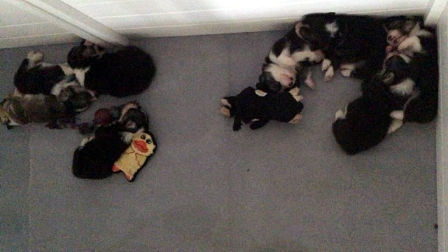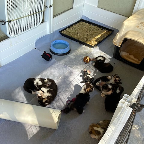 SOOO big now! I had to enlarge their pen because they were growing so fast, so now they get to meet and greet my other three older corgis girls. Some pups have ears up, some not. The fluffs are getting even more adorable and they are all now eating puppy chow and not baby food anymore. They LOVE playing with their new toys and are wrestling with each other constantly. Next week they get their first vaccination and micro-chipped.